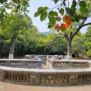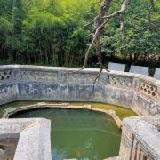 这里群山环抱,苍松古柏,流水涓涓,亭台掩映,花香鸟语,风景幽静。自古常有骚人墨客来此咏诗作赋,现在不少游客来此参观白马泉、养鱼池和亭台等景观。