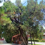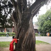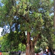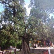黄帝陵轩辕庙院中较为知名的便是黄帝手植柏,位于黄帝陵轩辕庙门内左侧2米处。相传它为轩辕黄帝亲手所植,距今5000多年,是世界上非常古老的柏树。柏树高20余米,胸径11米,苍劲挺拔,冠盖蔽空,叶子四季不衰,层层密密,像个巨大的绿伞。