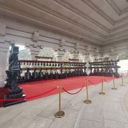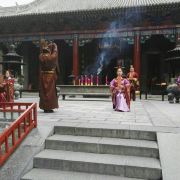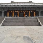 黄帝陵轩辕庙也称黄帝庙,始建于汉代,是黄帝陵中的主要景点之一,也是祭祀黄帝的主要场所。黄帝陵轩辕庙依山傍水而建,坐北朝南,由黄帝陵轩辕庙和祭祀大殿两部分组成,主要建筑有庙门、诚心亭、碑亭、人文初祖殿和祭祀广场及祭祀大殿。