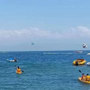 南湾值得推荐的水上项目要数飞鱼了,此外,还有香蕉船、双人滑翔伞、拖曳伞、甜甜圈、水上摩托、水上雪橇、水上滑板、水上飞板、水下摩托艇等。