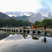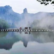 5分 超棒朱潭山以其独特的自然风光、人文历史和丰富的旅游设施吸引了众多游客,是集旅游、摄影及文化探索的绝佳之地。清晨只见练溪两岸绿树草滩,江雾弥漫,农夫黄牛,春意盎然,远眺北面晦翁岩,山岩倒影水中,如诗如画。从西侧稻 田中 往晦翁岩望去,梦幻山峦,仙气缥缈 ,绿野仙踪,好一派明媚春光,充满诗情画意,令人陶醉。一入景区,一眼就看到远处的鼎湖峰。独特的地理环境造就了这里美丽的风景,清晨好溪上有雾,此景犹如仙境。好溪远看好似一条长龙蜿蜒盘旋在碧水上,山水飘逸、云雾缭绕。如果你们想要拍出云雾缭绕的朱潭山“赶牛图”,记得一定要赶早,还需赶得巧。我们真是好运,刚到这里,就看到点烟饼造景,偶遇 东北 一个摄影图拍老农牵牛,我们看到朱潭山一夜爆红的场景,跟着蹭拍一组,好爽啊。