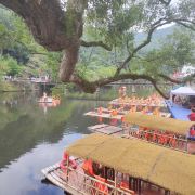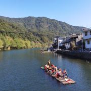 民宿门口就是竹筏码头,傍晚时分泛舟河上,看落日将古村染成金黄,这份惬意成了我们国庆旅途中最美好的记忆。