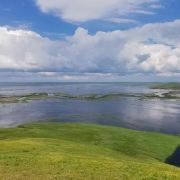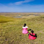 乘观光车登顶观景台,俯瞰湿地与草原,可以体验亚洲最长1200米草原滑道。这里是呼伦贝尔草原"风吹草低见牛羊"的代表。也是夏天适合去游玩的地方。