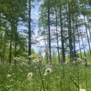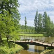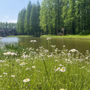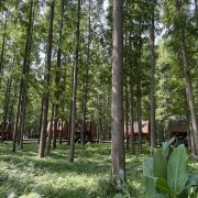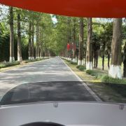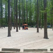 5.最后可以继续乘车,也可以体验下走野路子(在做瑜伽那边有一条,那是如海绵般松软,又如女孩子饱含泪水的眼睛,却滴水不漏的小路,说白了就是感觉得到有很多的水分,但却不湿鞋,应该没有蚊虫,自己选择吧😁),穿过这段小山路,回到刚开始坐观光车那里看到的西侧郁郁葱葱的杉树将军站岗的柏油公路(跑步机实景模式的实景在现)