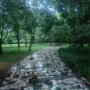 刚进公园,一片翠绿的草坪便映入眼帘,嫩绿的小草像是给大地铺上了一层柔软的地毯。沿着石板路前行,两旁的树木枝繁叶茂,投下一片片清凉的树荫。微风拂过,树叶沙沙作响,仿佛在轻声诉说着古老的传说。