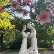 穿过树林,便来到了著名的丛台。这座古老的建筑高高耸立,古朴而庄重。登上丛台,极目远眺,整个公园的美景尽收眼底。远处的湖水波光粼粼,湖面上几只游船缓缓划过,留下一道道涟漪。近处的花坛里,各色鲜花竞相绽放,红的似火,粉的如霞,黄的赛金,空气中弥漫着淡淡的花香,令人心旷神怡。