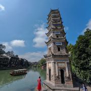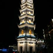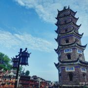 5分 超棒凤凰万名塔位于沱江沙湾北岸,与遐昌阁、虹桥相映,岸边上去就是万寿宫。塔面装饰雅致,塔身挺拔秀丽,立于沱江之畔。为七级六角砖塔,现在的这座塔是凤凰籍著名画家黄永玉牵头倡议重修的。整个塔身与两岸的江景、吊脚楼看起非常相配。不要门票,塔不能登上去,只能外观。观看和拍摄塔身最佳地点是在虹桥上,但虹桥必须要买通票才能登上。游览万名塔可以和岸上的万寿宫一起游览了,沱江泛舟而来的终点站也是这。