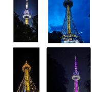 1. 塔高232米,海拔348米,由底座球场冠型建筑、钢架塔体、碟形塔楼、球形塔楼和天线桅杆组成,总重1300吨,使用超过1.4万吨钢材和上万个钢件建造,被誉为“中国第一钢塔”。其设计融合了现代钢构技术与观光功能,1997年被国务院发展研究中心认证为“中华之最”。