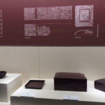 后室中置一较前室稍大的漆木棺,为墓主朱然的葬具。木棺内外表面贴有一层麻布,上涂漆腻。棺外用黑漆,内用朱漆。朱然墓内共出土随葬器物140多件,有漆木器、瓷器、陶器、铜器等,其中漆木器约占百分之57。许多漆器上彩绘人物故事和动植物纹图案。