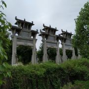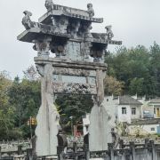 若要看村中的牌坊,一是可以看下江氏宗祠前的汉白玉进士第牌坊,始建于明代,现在看到的是现代新建的;二是可以看下明代的一对牌坊“父子进士坊”,这对牌坊是古物,上面还有历经太平天国军战火而遗留下的黑黑的痕迹。