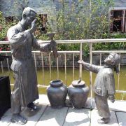 故乡里是清远市独具特色的岭南文化旅游区,小桥流水、宅邸民居,真实再现了岭南水乡的传统风貌,用栩栩如生的蜡像展现了祖辈的生活情景。走在青石板路上,经营传统工艺品的商铺、极具民族特色的传统表演等,为这里增添了浓厚的人文风韵。