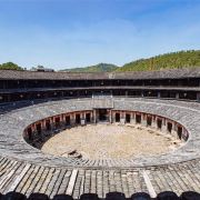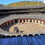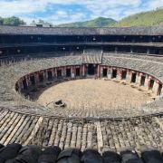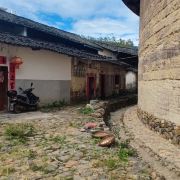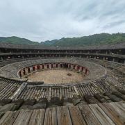 土楼现在已经没有人住在里面了,居民已经搬到土楼外面,可以攀爬到三层,体验围屋设计之美,游览时间完全看个人,喜欢拍照的可以多找些角度。入大门处有一小方槽,当地人说这是排水口,围屋里的水会顺此经暗渠流入河中,蛮独特的设计