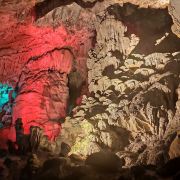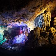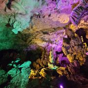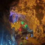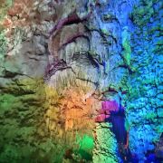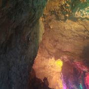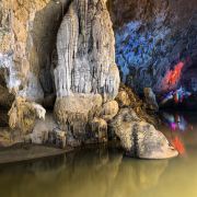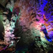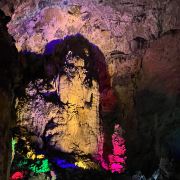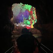 景区内溶洞山壁如刀峭般直立,千奇百怪的钟乳石,五光十色倒映在河面上,如梦似幻,仿佛身处童话世界。很多人认为,地下溶洞的景观大致相同,但在我看来,不同的溶洞有着完全不同的美,正如在世界上,你永远找不到两个长相和气质完全相同的美女。