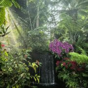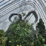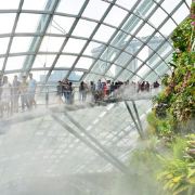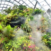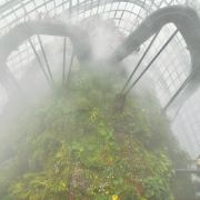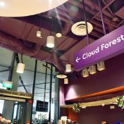 云雾林模拟了海拔 1,000 米至 3,500 米的热带山地地区和全球其他高海拔地区凉爽潮湿的气候。走进场馆,引入眼帘的便是高达35米的人造山和30米高的瀑布。山上种满了茂密的树木,满目绿意,让人神清气爽。访客可以乘坐电梯直达顶楼,再通过空中步道 (云雾廊)缓缓走下来,俯瞰山下的“”,自由地出入9个不同的区域,欣赏来自热带山地地区的各种植物,其中不乏珍稀草木花卉。