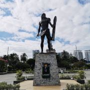 这是1521年4月27日麦丹酋长拉布拉布和外国侵略者费迪南德·麦哲伦交战的场所。这块纪念碑刻画着这位一手握着大刀、另一只手拿着锤子的英雄。据说,在这位英雄与麦哲伦交战时运用了这些武器。这座纪念碑矗立着,标志了菲律宾人的勇敢。