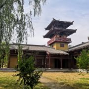 • 风格独特:采用挺拔、简洁的仿汉代风格造型,青瓦、黄墙、红门、青石台阶,正门的阙门式设计以及门柱上方的覆斗型结构等,极具传统美感,同时也赋予了现代建筑文化的气息,让人仿佛穿越回汉代。