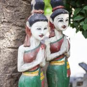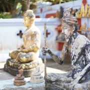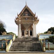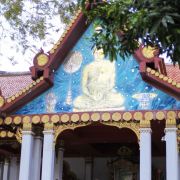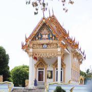 5分 超棒肉身舍利寺中供奉着一尊高僧的肉身舍利,这位高僧Luong Pordaeng于1973年圆寂,死前处于坐禅的姿势,并在此后一直保持着这个状态。现在寺庙将舍利存放于玻璃箱中供信徒朝拜。令人费解的是,肉身在30年内从未出现过腐败的征兆。