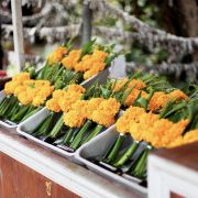 寺庙门口有免费的冰水供大家自取饮用,给肉身佛烧香、献花也没有人在那里收款,只有一个功德箱。鲜花、蜡烛和香摆在台子上,看你自己的意愿,拿点钱出来投进功德箱也好,不拿钱也好,都可以自取供品。