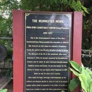 据说这位高僧有预测的能力,准确地预测到了自己的死期,在快离世之前,就不再吃正常的食物,而是多吃一些有防腐功能的香料。这样他死以后,尸身得以完整保存下来,不再腐坏变质。如今寺内的人给肉身的脸上戴了一幅墨镜,遮掉了空洞。