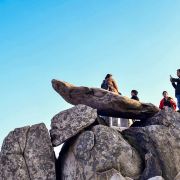 5分 超棒此题刻在舍身崖峰顶上,题刻年代不祥。字面高140厘米,宽370厘米。“ 瞻鲁台[1]”3字横列1行,字径130厘米,楷书。