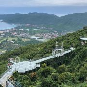 玻璃栈道海拔450米,全长400多米。网红打卡景点,海誓山盟,一边靠山叫“山盟”,一边靠海称“海誓”,站在“山盟”“海誓”的圆形玻璃了望台上,总要拍一张背影,以表示自己向往“诗和远方”📖🔭