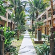 度假区内的浪漫海岸度假酒店整体是东南亚风情格调建筑,在此能够独揽180°美丽的滨海美景,尽享闲适假日时光。温德姆酒店以东南亚建筑风格、巴厘岛艺术文化主题相结合,展出众多巴厘岛工艺大师纯手工创作的艺术精品,拥有良好生态环境和典型亚热带滨海景观,营造浓郁异域风情。喜来登度假酒店拥有客房、套房共105间,环境典雅豪华,配备完善的天际泳池和望海温泉,另有别具特色的爱丽丝餐厅荟萃多国风味美食,配合细致殷勤的专业服务,必令大家身心放松,尽享休闲。