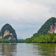 甲米的海景以随处可见的石灰石山而有名。这里是熔岩区,山冒出海面,形成一座座形状各异的小岛,千姿百态,别有趣致。