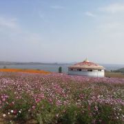 花仙子生态旅游区坐落在山东省日照市西湖镇,依日照西湖水畔兴建,紧邻日照水库,三面环水,风景优美。景区以花为主,是一家集智慧农业、创意文化、休闲旅游为一体的观光度假区,被誉为“齐鲁赏花地,日照花仙子”。