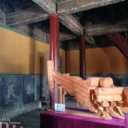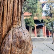 2、奎文阁旁有两棵柏树很奇特,一棵的树干条纹弯弯曲曲很像龙身称龙柏,另一棵枝干像凤凰称凤柏,但后者已死。奎文阁原名“藏书楼”,古代天象里魁星主文章,但孔子不信鬼神后人便将“魁”改为“奎”。阁始建于宋天禧二年(1018年),明成化十九年(1483年)改建,匾额为清乾隆帝所题。奎文阁全部为木块拼装没有用钉子,建国后国家曾花120万重修过,像拆积木一样卸下后再拼接上去。阁内一层为该建筑结构的模型剖析,楼梯不能上。