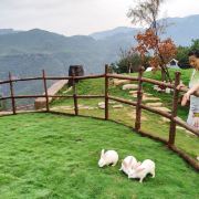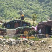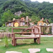 霍比特小屋:童话风格建筑,搭配水雾景观,充满浪漫氛围。