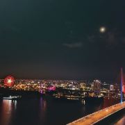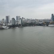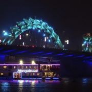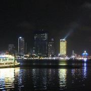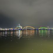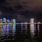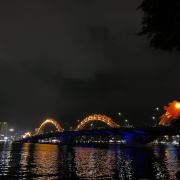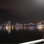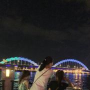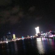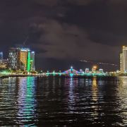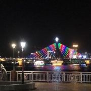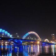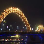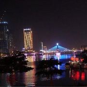 岘港韩江上较有名的是龙桥,每到周末,龙口会喷出水雾和火。夜色下的韩江倒映着两旁的高楼大厦等,让江面显得更加华丽多彩。