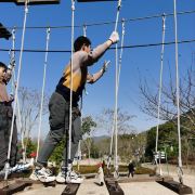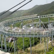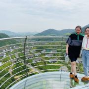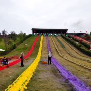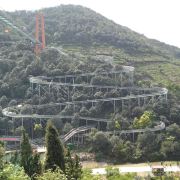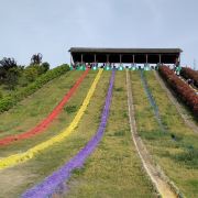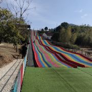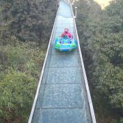 再说说里面的项目,这个季节蝴蝶馆就不要去了,小火车十来分钟,没啥感觉。童心童趣园里那个高空走绳索的项目值得一玩。七色彩虹滑道也推荐。骑马,走一圈不到100米。射箭,需要力量和技巧,今天人少可以多拿一些箭,感谢工作人员。卡丁车儿子开了,一张票只能体验一次。接下来就是买票坐车去魔毯玻璃桥以及玻璃漂流。提醒大家,魔毯是一个传送带,到了顶上变水平方向后赶紧从侧面站起来,不要一直坐着,后面类似电梯一样,会卡主衣服的,有危险性。玻璃漂流今天也可以畅玩,儿童套票含的,单买的话一张红的毛爷爷,也可以畅玩,需要购买一次性雨衣的,然后再买票坐车到出口,或者步行几公里。