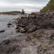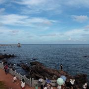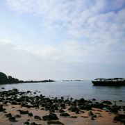 防城港怪石滩位于江山半岛景区的南端,景如其名,这里的海滩上分布着成片的石滩,它们沟壑纵横,形状各异,大部分呈现出红褐色,许多人都称其为“海上赤壁”。怪石滩的海水也较为清澈,不过这里人少,而且海边的礁石略滑,并不建议下水游玩。可以在怪石滩上散散步、看看海、拍拍照,感受这不一般的海滨风光。