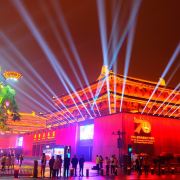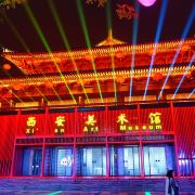 西安美术馆全名曲江新区·西安美术馆,位于大唐不夜城1区,西安植物园新区北端。馆体建筑为唐代风格,形体俊美,庄重大方,古朴却富有活力。是集艺术作品展览、艺术品收藏、国内外艺术交流、艺术研究、美术教育等为一体的大型综合性美术馆。