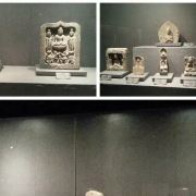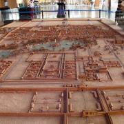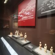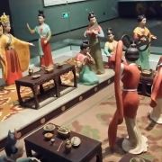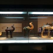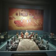 走进博物馆首先看到的是大厅中央陈列的大明宫国家遗址公园建成前后的模型沙盘。馆内展出了兽面纹方砖、团花纹方砖、菱格草纹方砖、鸱尾、石螭首、三彩马 、石刻飞兽、白石象、文官俑等文物267件(组),均为唐代文物精品。