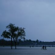✨来的时候已是傍晚,比起白天的阳光明媚,其实我更喜欢这样夜色降临前静谧的蓝色。空旷的广场,稀疏的树木,偶尔一声孤鸟的叫声,一瞬间竟让人有种身处戈壁滩的荒凉感。