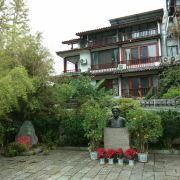 4分 满意徐悲鸿故居位于阳朔县前街,距县人民政府大院仅50米,临漓江,距游船码头只有200米左右。1936年徐悲鸿游阳朔,想定居于碧莲峰下。李宗仁得知后,便买下一屋相赠。徐悲鸿先生于1935-1937年期间两次到阳朔,寓居近一年。1936年6月受聘任广西美术会名誉会长,12月在桂筹建桂林美术院。还创办了“广西省艺术师资训练班”,为广西培养艺术人才作出了重要贡献。在此进行了大量创作,《晨曲》、《逆风》、《风雨思君子》、《古柏》、《漓江春雨》等是该时期的代表作。旧居为一座单进中式砖木结构硬山顶平房,青砖灰瓦,面阔3间,进深3间。中为正厅,东房客室,西房画室,厅后卧室。建筑面积约120平方米,院内植白玉兰树一株,10多米高,很有年头了。院内有徐悲鸿雕塑一座,展品不多均为复制品。