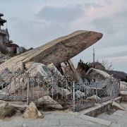 5分 超棒日观峰上建有一组中西合璧,石墙青瓦,灰色基调的建筑群,这就是我国最早的高山气象站—— 泰山气象站,它是我国为参加第二届国际极年计划而建的 泰山 测候所,1932年8月1日首开气象记录。国际极年观测任务结束后,由竺可桢先生选址日观峰扩建为永久高山气象站。1936年1月1日启用,称“国立中央研究院日观峰气象站”。 日观峰峰北,有一巨石向北斜上横出,名为“拱北石”,因其形犹如起身探海,故又名“探海石”。