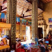 2️⃣我脱鞋走进大殿,这里的老挝信众较多,大多数是女子跪拜在寺内,等待僧侣布施,并请比丘(长老)“拴线”的。据说那是老挝古老的求愿“拴线习俗”,信众通过“拴线”请寺内的僧侣为之诵经驱邪,祈运去病。僧人首先嘴里念念有词地念一段经文,一般是有关驱邪、祈运、去病的,然后就是在许愿人的手腕上系上许愿绳(Baci)。这是一种向神灵许愿的仪式(Baci Sukhuan),是老挝宗教文化的核心。这种仪式举行的时间包括出生、结婚、旅行前后、找到新工作,或其他人生中重要的事件发生之时。系绳子的含义是要将神灵的力量集中起来,帮助人们精力充沛地面对下一人生阶段。