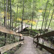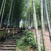 景区山顶有个观竹楼,站在上面,俯看满山遍野的竹林,尤其是在风吹过时,满眼的竹海更是碧波荡漾。如此人间美境,不愧有“浙东大竹海”的美称。