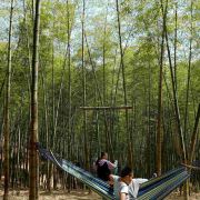 5分 超棒我们是天气有点热的时候去的,沿着山路上去,都是竹林,竹林丛中气温下降不少,从门口进去就能看到很多吊床,贪玩的我还在那儿逗留了一会,走进去里面陆续也能发现吊床,还有秋千。里面有两个收费项目,我是买门票的时候带进的,价格划算一点。单买的价格我也忘记了,两个项目对于我来说不是特别刺激,往里面走,还有一些有趣的项目,是免费玩的。拍拍照片拍拍抖音,走走停停,是个过周末的休闲地方!另外,建议带点小零食,里面好像没找到有买啥吃的的地点。