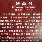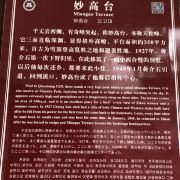 妙高台后面的建筑是1927年建造的私人别墅。抬头所见,二楼中间悬挂着白底黑字的“妙高台”横匾。整座别墅,分为二层,上下平房共六间,用西式平台连成一体,总建筑面积436平方米。走进大门,一楼中间是个天井,两边平房各一间;二楼水泥走廊与阳台相连,中间是会客室,东边为卧室,西边为书房。