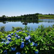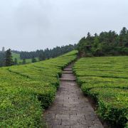 5分 超棒福泉山景区是在东钱湖边上的山里,周围交通不是很方便,比较适合自驾,游客可以网约车过去,车到景区售票处直接换景区的小巴车上山,小巴绕山一路一百多个大小弯到山顶,车程20分钟,整片山区都是茶园,据说是华东地区最大的茶场,山顶空气清新,景色也不错,虽然不出名作为休闲旅游很好,特别是十一期间人还很少,山顶有个湖,湖边有些休闲设施和一个茶室,茶室布置很优雅,不过茶的价格很贵,喝了壶288的福泉龙舌,茶叶都不舍得放几片,本来绿茶就不经泡,两泡就基本没什么味道了,108的茶点,只有几片西瓜几个葡萄和四小块蛋糕,只当花钱买个环境,建议天好外面有坐的情况下还是别进去了,在外面看风景还舒服