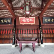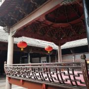 入武岭门后,右侧不远处的建筑即是蒋氏宗祠。蒋氏宗祠是溪口蒋姓进行宗族活动的传统场所,祭祖、庆典、嫁娶、出丧等都在此举行。这里供奉着蒋家自元末蒋士杰始祖迁居溪口后的历代祖宗神位,600多年的家族史在此浓缩。