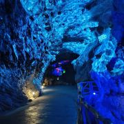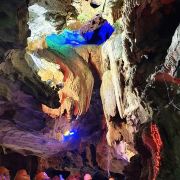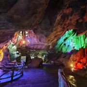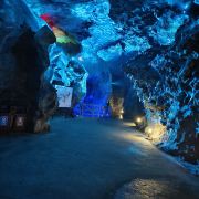 5分 超棒石花水洞,是海南儋州一颗璀璨的地下明珠,让人沉浸于大自然的鬼斧神工之中。洞内石花数量众多、形态各异,晶莹剔透的它们如银菊绽放、似珊瑚丛生,在灯光映照下熠熠生辉,堪称奇观。卷曲石、文石花和方解石晶体花这三大镇洞之宝,更是世界罕见,极具科考与观赏价值。除了石花,洞内的钟乳石、石笋等也形态万千,有的像大象戏水,有的如猪八戒背媳妇,惟妙惟肖。蜿蜒的地下暗河清澈见底,乘船游览其中,光影在洞壁跳跃,仿佛置身于神秘的地下艺术宫殿。洞外还有石林、橡胶林等,与洞内景观相互映衬,构成了一幅和谐优美的自然画卷。虽然石花水洞的规模可能比不上一些著名溶洞,但它独特的景观和较低的开发度,使其别有一番小众景点的韵味,是值得一游的特色之地