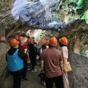 石花水洞是儋州罕见的天然溶洞,距今已有约140万年,洞内有着形态各异的钟乳石,很为特别的当属这里的洞内石壁上布满了奇特的石花,它们细小而又茂密,如一簇簇盛开的花朵。洞内还有着一条暗河,可以乘船游览。