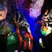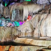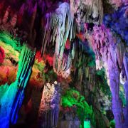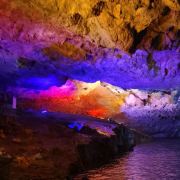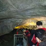 4分 满意5.1去的交通位置比较便利,一下高速就到了,人车都比较多,景区公共场所不够大,9点多到的,车子都没地方停了,按交警蜀黍的指挥就在高速口的2侧停下了。景区游览都是在洞里面,比较凉爽,景观比较漂亮,先走一段再坐2次船,然后再座一段小火车然后走出去,整个就结束了,整体感觉假日遛娃还算可以,小孩玩的比较开心,出洞口离景区停车场入口有7公里,要单独买车票到入口处5元/人,或打车30元/趟,这点要给差评,这是我们第一次发现景区内中转收费的问题,虽然钱不多,但感觉很不人性化,而且中转的车也就20多座的小巴士,运力明显不足,排队严重。建议大家先在网上买好景区票,虽然便宜不了多少,但是取票很方便,不用排队!