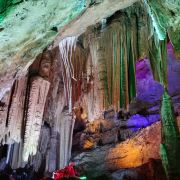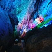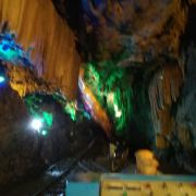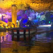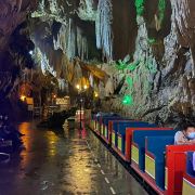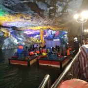 隐水洞的参观是一条不回头的线路,大家会经历坐船和小火车。这也是我们参观很多溶洞所不能体会到的。无论是泛舟船上还是坐着移动的小货车,都让我感受到了大自然的神奇和大自然的魅力。但是我又有一种担忧,人类在这里面建这样的旅游景点,是否会对大自然有一定的破坏呢?毕竟洞内的石油味还是挺大的。