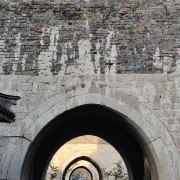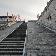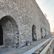 它由三座瓮城,四道券门贯通。每道券门均有可上下启动的“千斤闸”和双扇木门,但如今全部毁于战火。当年,遇有敌兵攻入城门,券门内的“千斤闸”迅速降落,切断敌人退路,守城伏兵四出,分别歼灭敌人,恰如关门打狗、瓮中捉鳖。