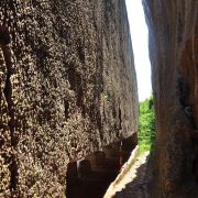 从明文化村到阳山碑材,可以走古采石场的路,也可以走雁门山奇石坡,去时走的哪一条,回来走另一条即是。雁门山奇石坡沿路有很多奇形怪状的石头,到指示牌处,指示牌指示右边通往碑额、碑身,左边通往碑座,先去看哪一边不是很有讲究。